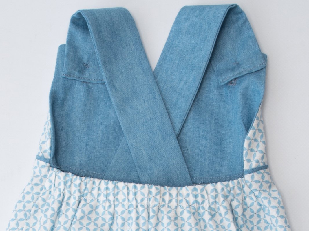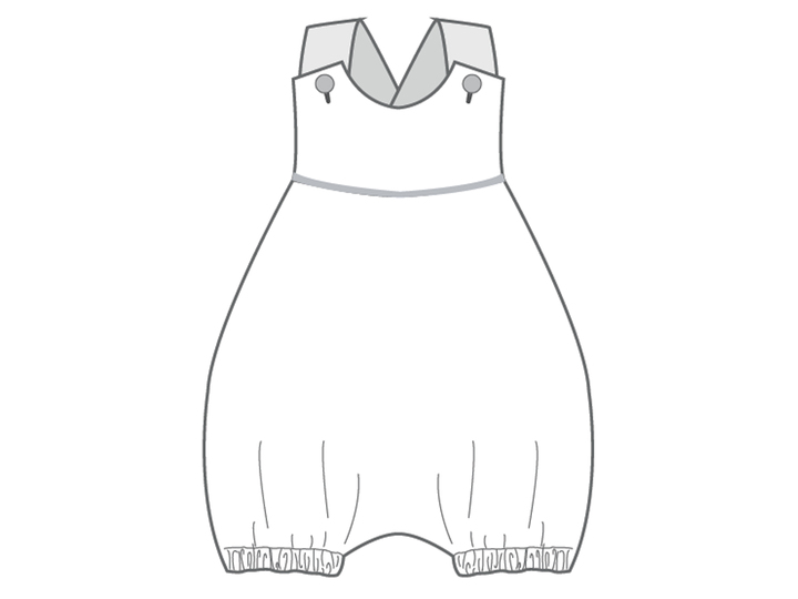 Variante A (PHIL): Sommerstrampler ohne Mittelnaht, breite und bequeme Form mit Träger zum Knöpfen, Paspel und Gummizug im Rückenteil. Die Nähanleitung ist mit ganz vielen ausführlichen Bildern. Der Strampler kann mit oder ohne Body getragen werden. Für Anfänger geeignet!