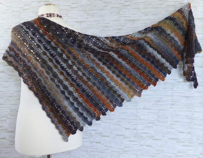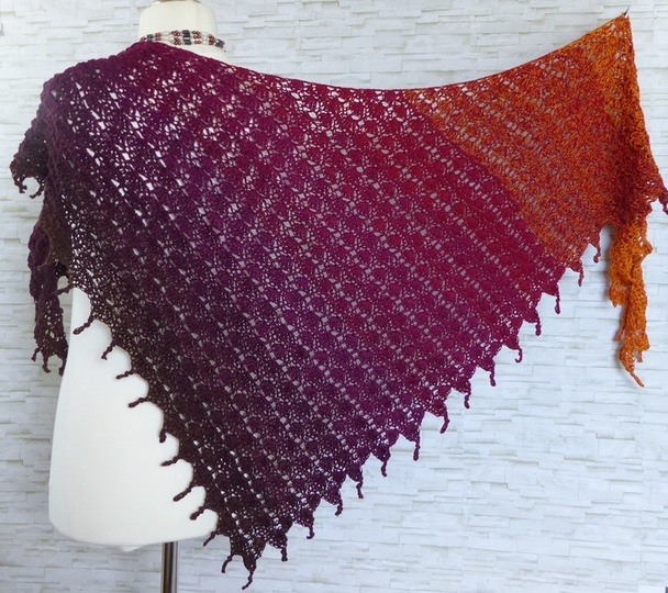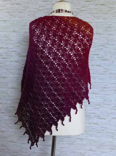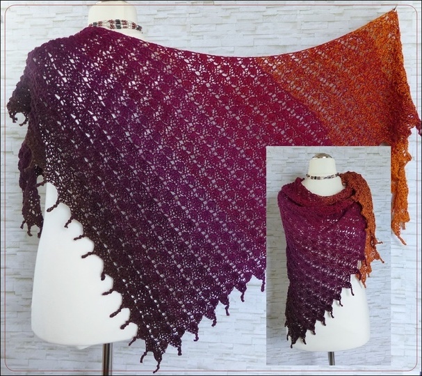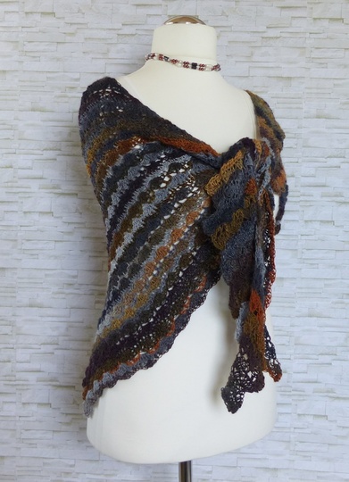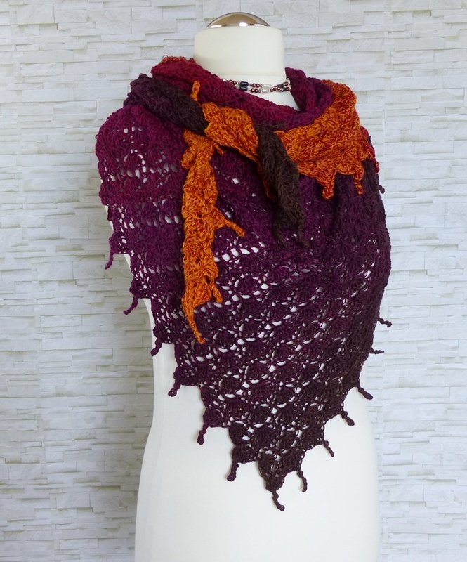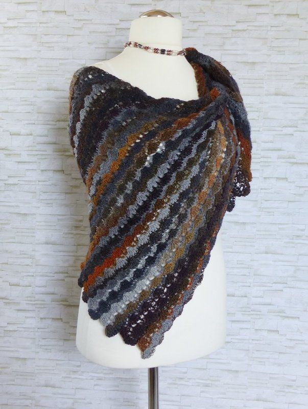 Das Tuch ist asymmetrisch und wird von der Seite her gehäkelt.