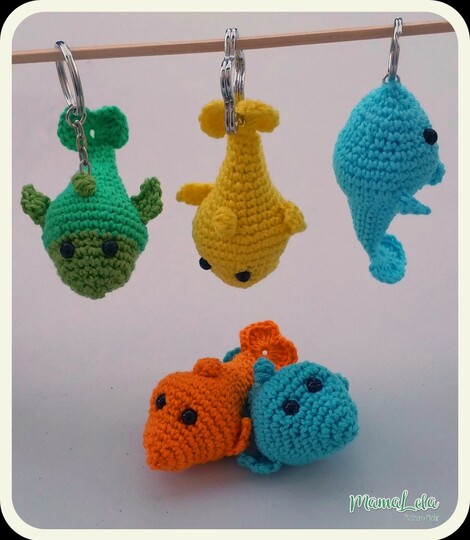 Mit dieser Häkelanleitung könnt ihr euch die im Artikelbild gezeigten Schlüsselanhänger zaubern.