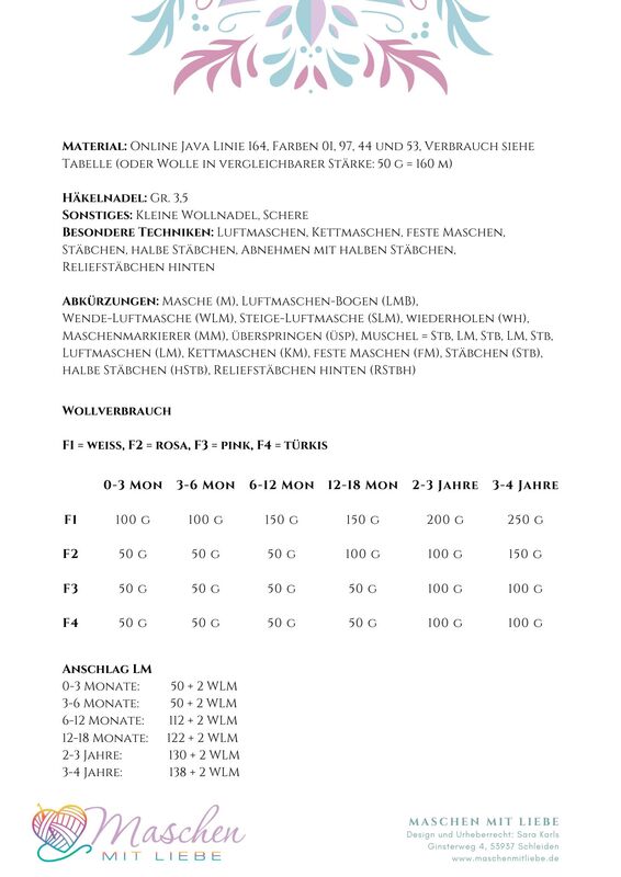 Ich wünsche euch viel Spaß und Freude beim Häkeln und selbstverständlich auch beim Tragen :-)