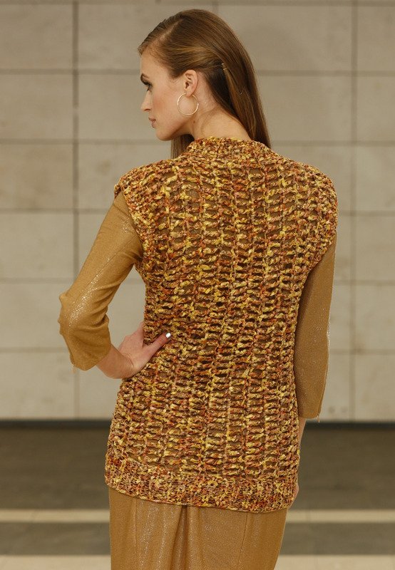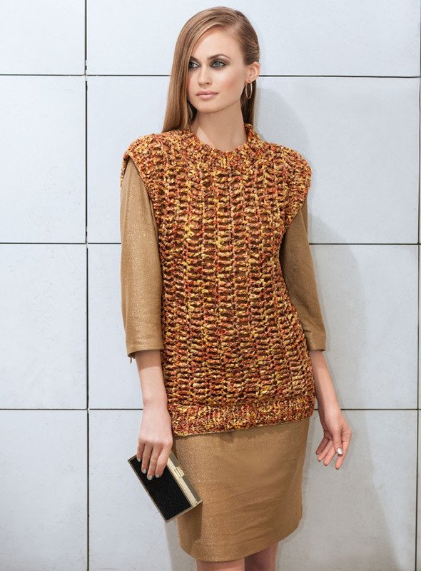 Erlaubt ist, was auffällt! Dann liegen Sie mit diesem Top goldrichtig. Es wird mit Doppelstäbchen gehäkelt und ist durch das voluminöse Bändchengarn ruckzuck fertig.