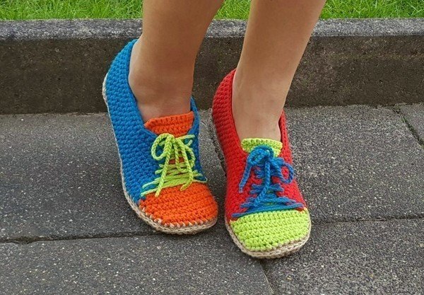 Nach dieser Anleitung können Sie super bequeme Schuhe häkeln. Mit Packschnur für draußen oder Wolle für zu Hause.