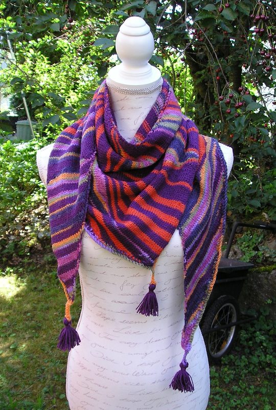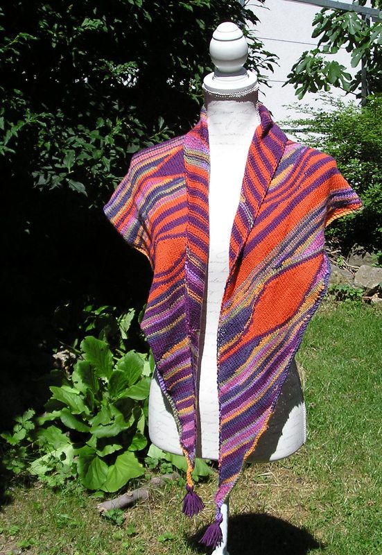 Anleitung zum Stricken des Dreieckstuches "Oriental" aus 4-fädiger Sockenwolle mit Streifen und Rauten mit verkürzten Reihen