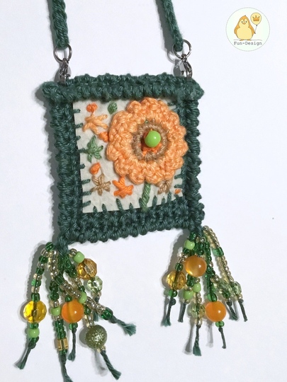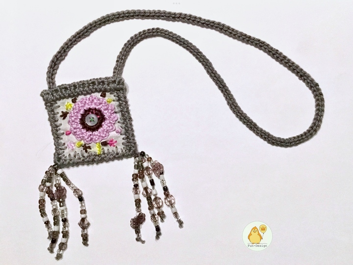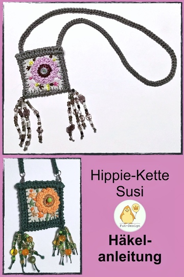 Susi ist eine gehäkelte Kette mit Retro-Charme, sie lässt die Hippie-Ära wieder aufleben.