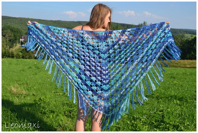 Das fertige Tuch ist luftig und locker und du kannst es sowohl als Stola über die Schultern legen, als Paero um die Hüfte am Strand tragen oder in den kalten Tagen um den Hals schlingen.