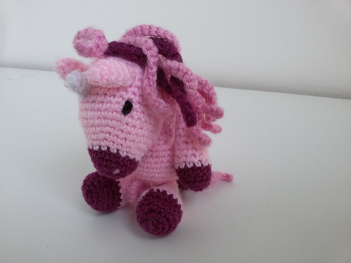 Da das Einhorn nur mit den Grundmaschenarten gehäkelt wird, ist die Anleitung auch für Anfänger geeignet (Luftmaschen, Wendemasche, Magischer Ring, feste Masche, Zunahme, Abnahme). Verarbeitet wurde hier Lisa von Gründl und Catania von Schachenmayr mit einer 2,5er Häkelnadel. Es kann auch andere Wolle verwendet werden, jedoch fällt dann das Einhorn kleiner oder größer aus.