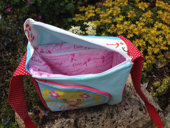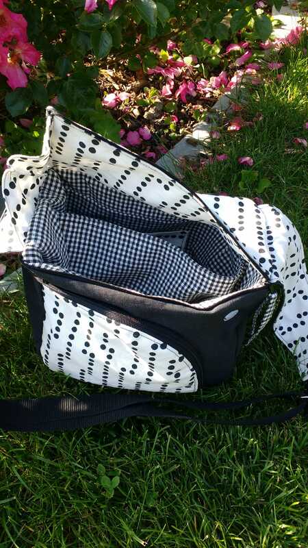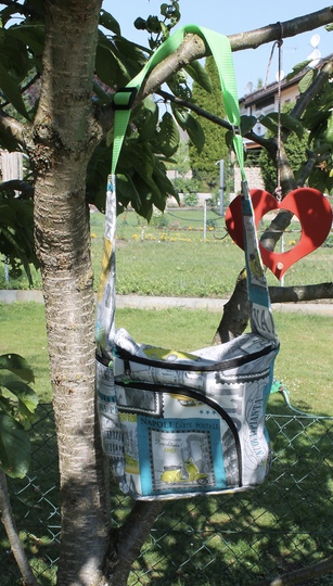 Auch als kleine Wickeltasche ist sie gut verwendbar, am Kinderwagengriff lässt sie sich gut anhängen.