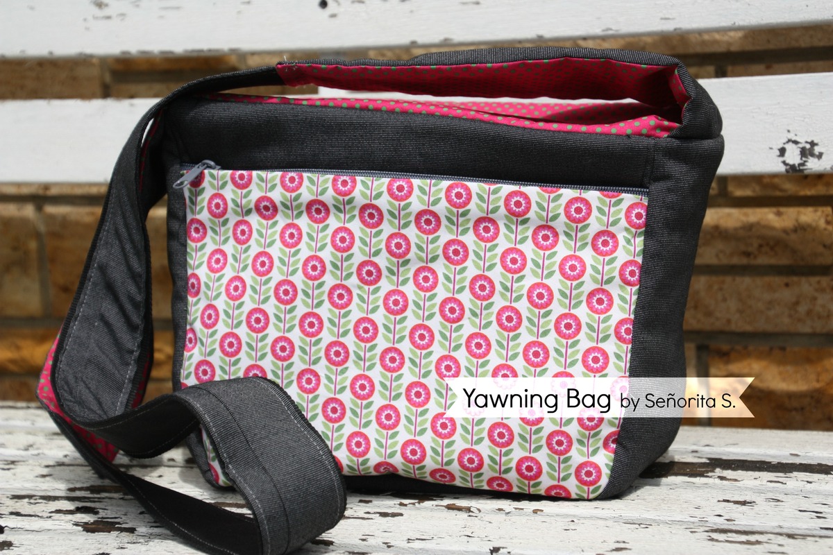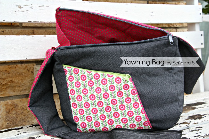 Warum „yawning“, also „gähnend“? Ganz einfach: Der Reißverschluss der Tasche ist so konstruiert, dass der Tascheneingriff extra weit ist – ganz so, als würde die Tasche gähnen. Dadurch lässt sich die Tasche viel leichter „befüllen“, durchsuchen, entleeren etc. als mit herkömmlichen Reißverschlusslösungen, die nur einen Schlitz freigeben, der – zumindest mir – immer zu eng ist.