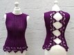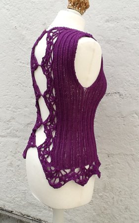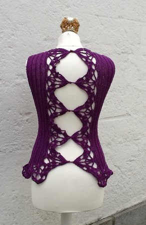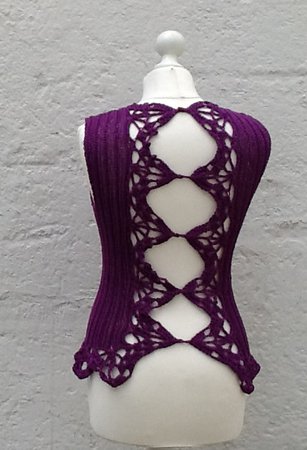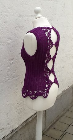 Das bezaubernde Shirt Romantika ist gehäkelt UND gestrickt und hat einen sehr raffinierten Rücken mit gehäkelten Spitzen.