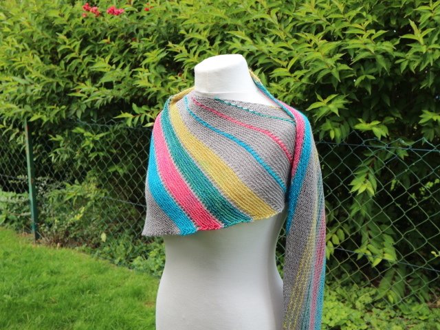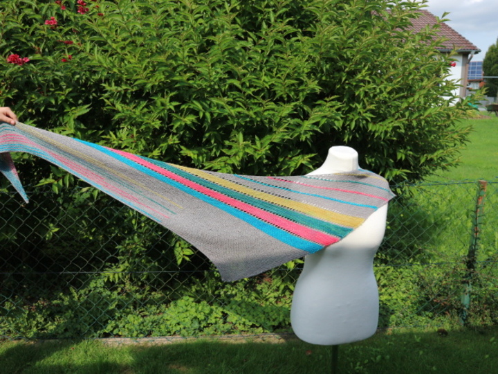 Falls Ihr noch Wollreste im Strickkorb habt (und wer hat das nicht :-))) dann seid Ihr mit dieser Anleitung genau richtig. Der Phantasie sind hier keine Grenzen gesetzt, was die Farbzusammenstellung angeht. Jeder Abschnitt kann mit einer anderen Farbe gestrickt werden. Auch zweifarbig ist das Tuch sehr schön und ganz bunt natürlich ein hingucker!