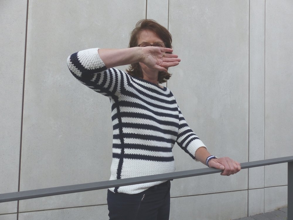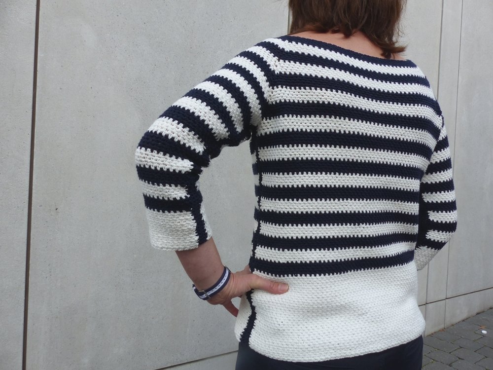 Diesen Pullover habe ich aus der Gamma von LangYarns im Moss-Muster gehäkelt.