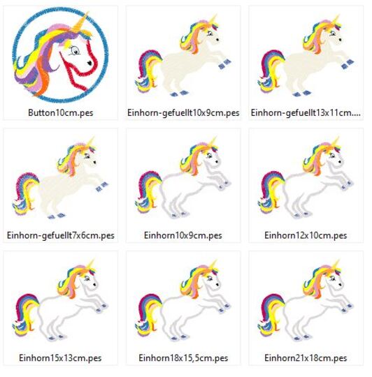 Einhorn Applis in 8 Größen plus ein Button in 10 cm