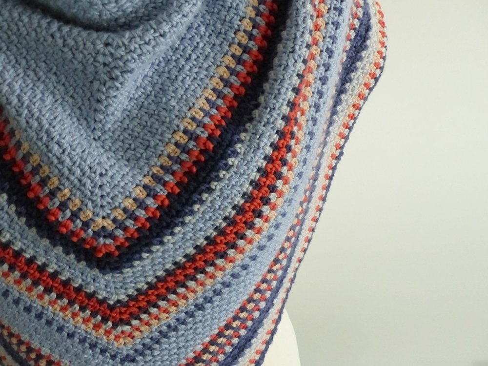Wie ein Tuch legt sich der Schal schön um deinen Hals, aber auch Dank seiner Größe kann man dieses Dreieckstuch schön um die Schultern legen.