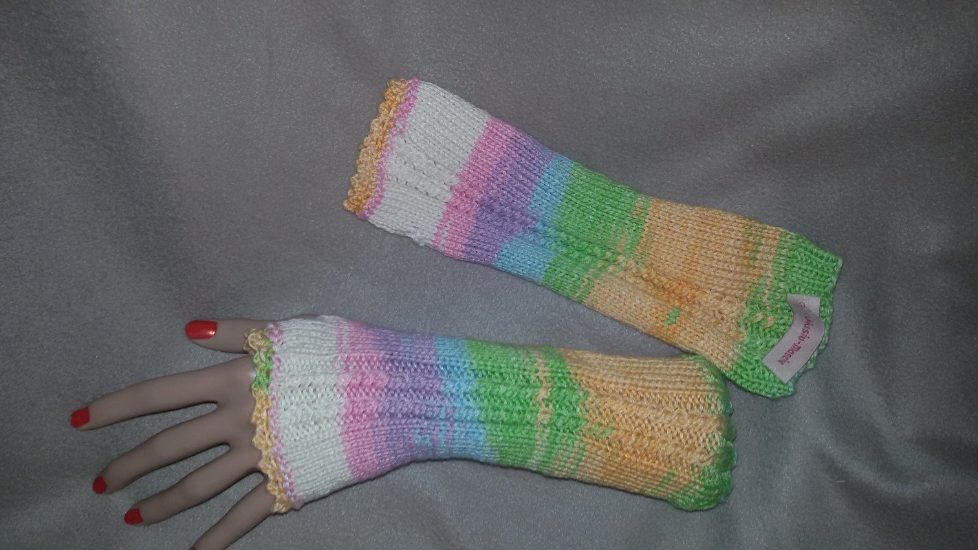 Mit dem Farbverlauf des Garns sehen die Stulpen so toll aus, das es nicht eines größeren Muster bedarf.