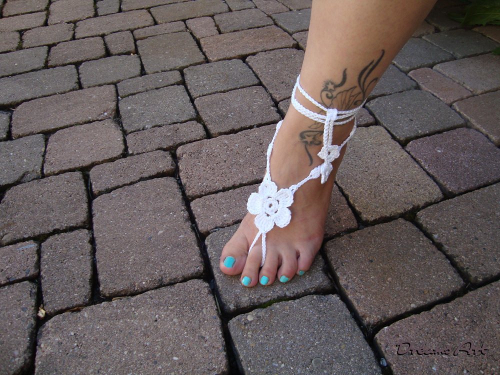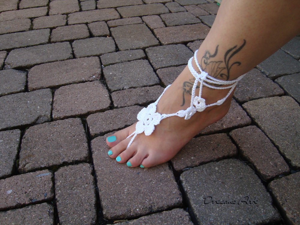 Hier bekommst du in elektronischer Form eine Häkel Anleitung für Barfuß Sandalen BFS1707. Diese Barfuß Sandalen können auch sehr schön als Handschmuck getragen werden. Diesen Fuß- oder Handschmuck kann man zu vielen Gelegenheiten tragen, ob am Strand, zur Party, im Garten, beim Yoga oder Bauchtanz. Sehr schön auch zur Hochzeit.