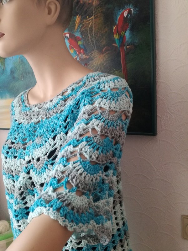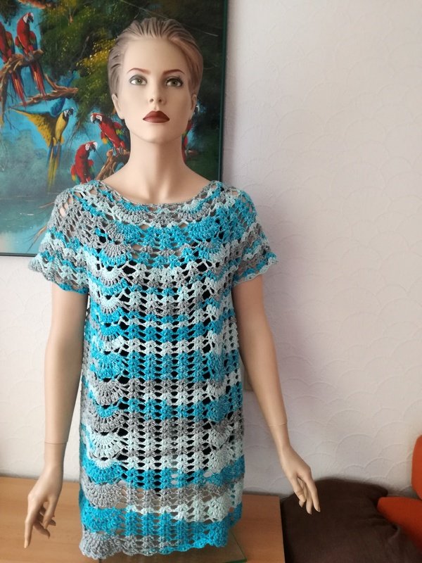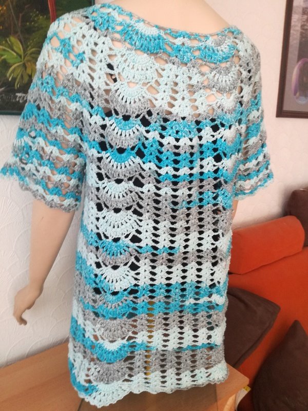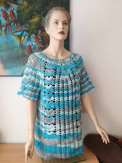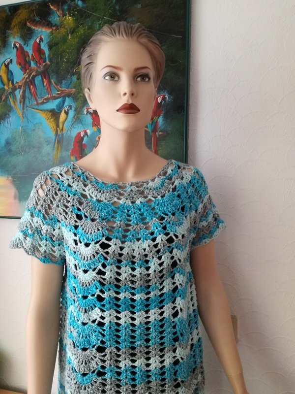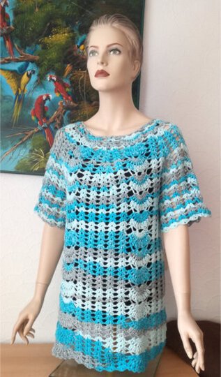 Um diese Tunika zu häkeln, braucht man Kenntnisse von Luftmaschen, Stäbchen, zusammen abgemaschten Stäbchen, Kettmaschen und festen Maschen. Also eine perfekte Anleitung sowohl für Anfänger/innen,