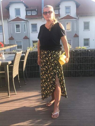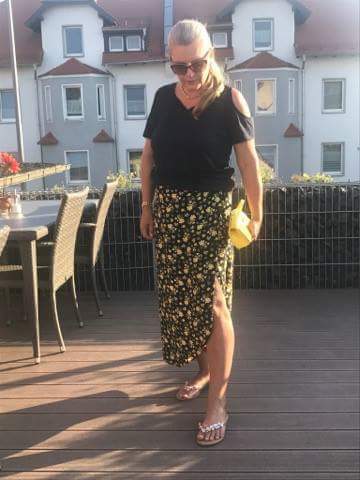 Von der Weite kann man sich den Rock für Gr. 34 genauso nähen wie in Gr. 48 und toll sieht er in jeder Größe aus.