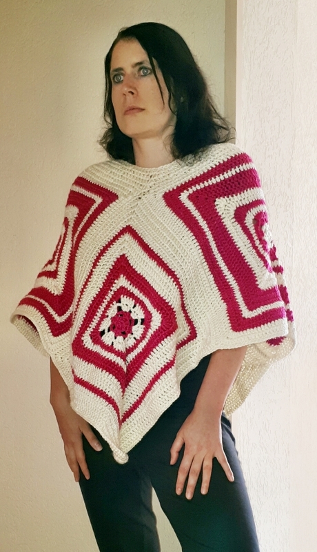 Der Poncho wird im Granny-Style in einer Einheitsgröße (S - XL) gehäkelt.