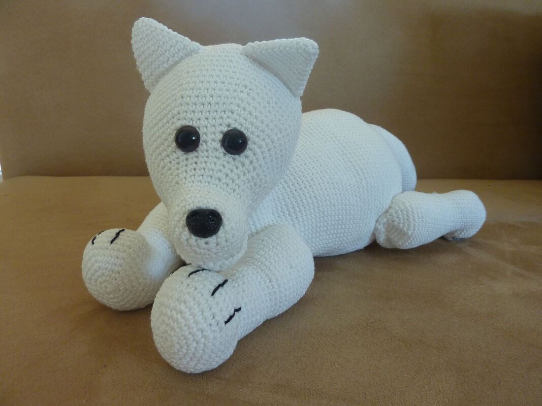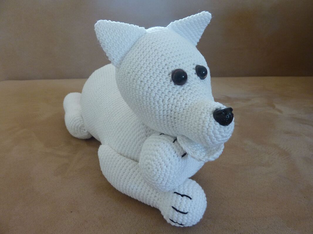 Unter Verwendung des angegebenen Materials wird Paolo Polarfuchs ca. 40 cm lang.