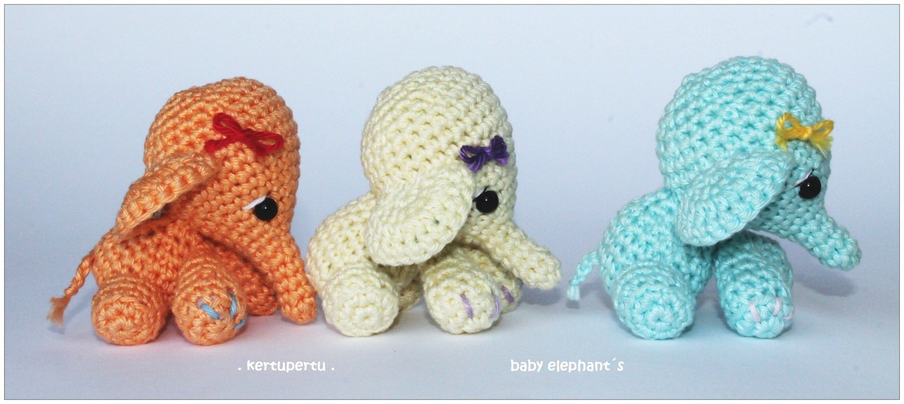 Das Elefantenbaby ist von naturaler Baumwollegarn, kleinen liebevollen Detailien und einer extra Portion Liebe gemacht - aber für Deinen süssen Elefant kannst Du jedes Garn verwenden, das Du gern magst - Tierchen wird ein bisschen größer oder ein bisschen kleiner, bleibt aber immer gleich niedlich!