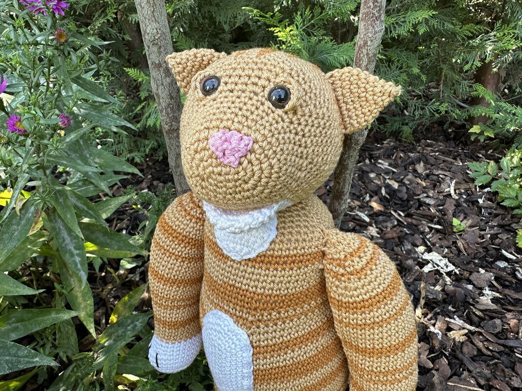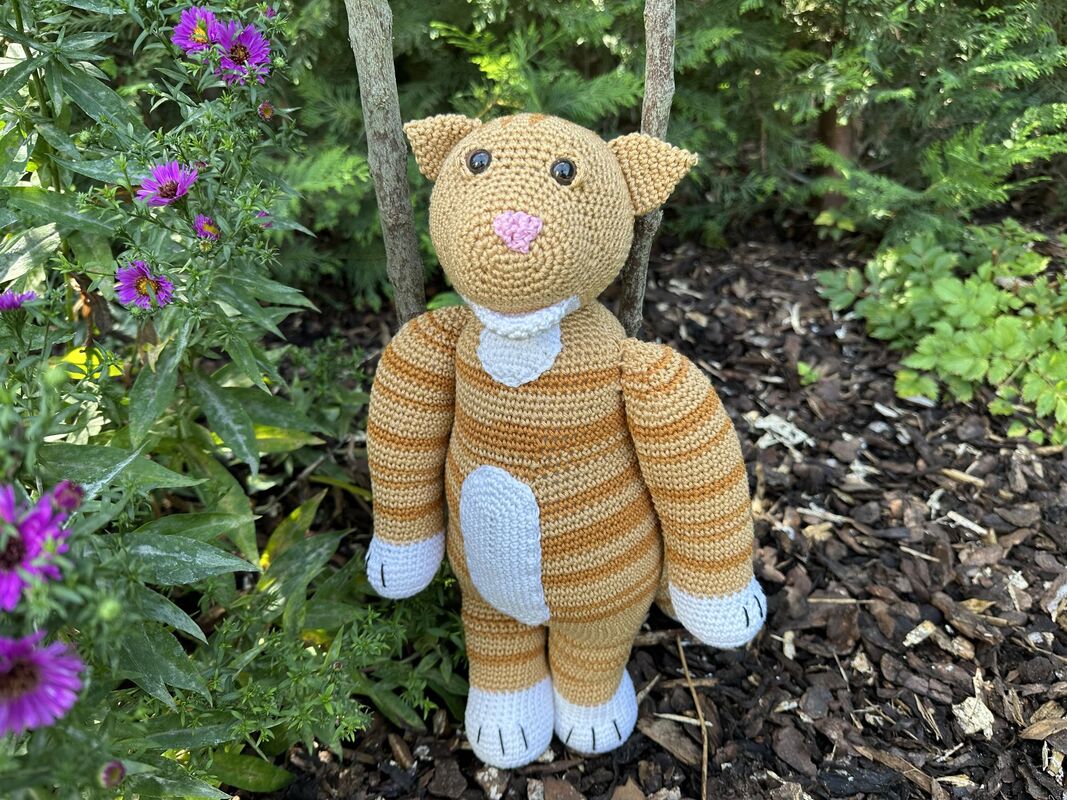 Mit dem angegebenen Material bringt es Camillo Cat auf stolze 42 cm Größe – perfekt zum Umarmen, Schmusen und Liebhaben.