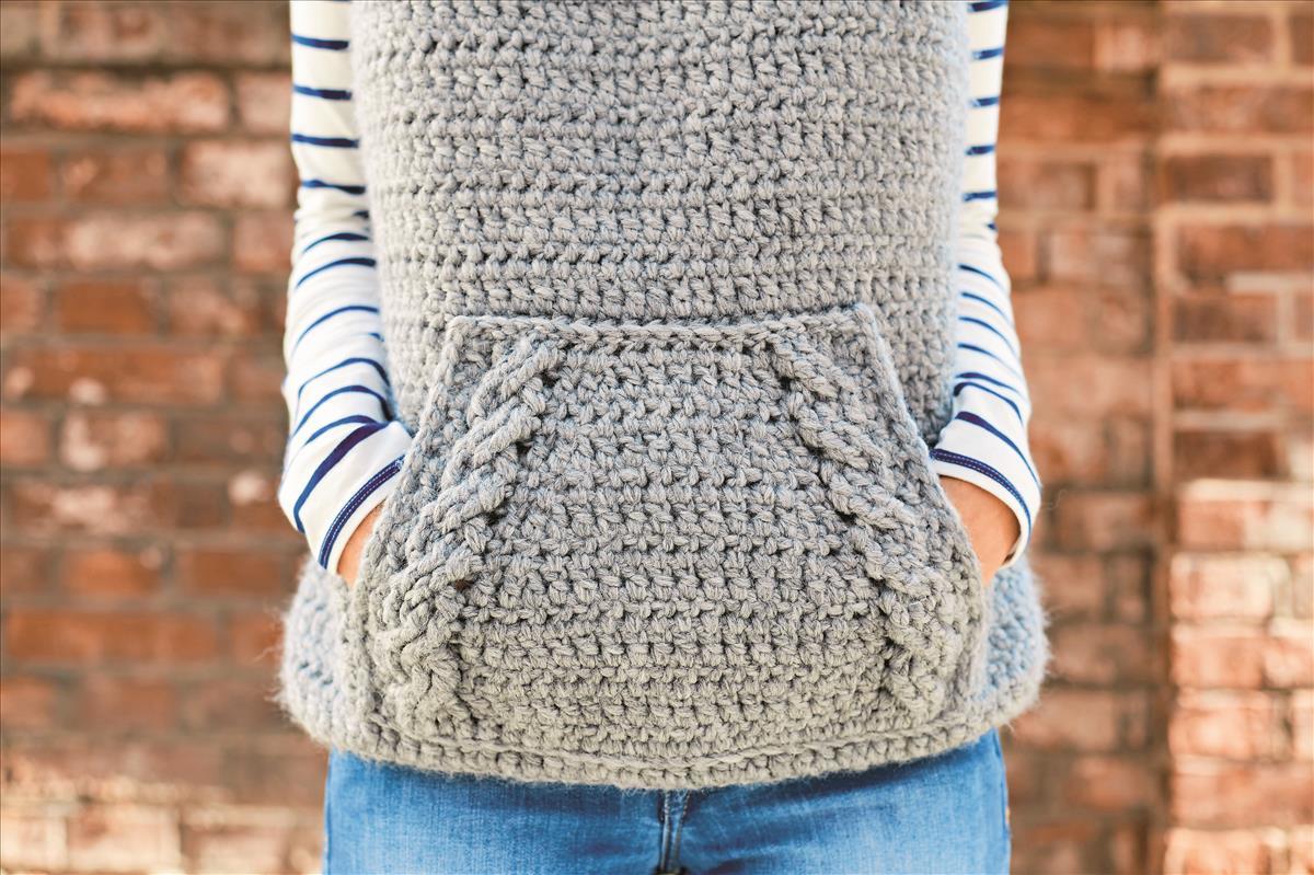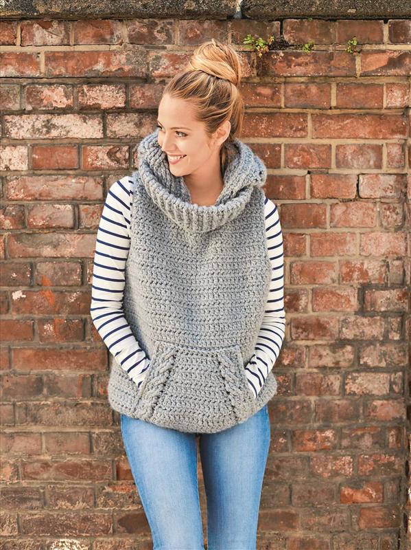 Der kuschelige Pullunder mit dem Wow-Faktor ist ein kleines Meisterstück mit Kuschelkragen, Kapuze und Kängurutasche. Nichts wie ran an den Haken und das exklusive Designerteil angenadelt!