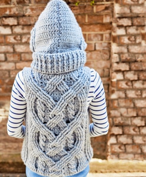 Ihr habt nicht genug von diesem tollen Zopfmuster? Die passende Mütze und Handschuhe zu diesem Pullunder gibt es im Set oder Einzeln bei der Designerin Anja Sypniewski: https://www.crazypatterns.net/de/items/23512/mod-008-haekelanleitung-winterset-mit-zopfmuster