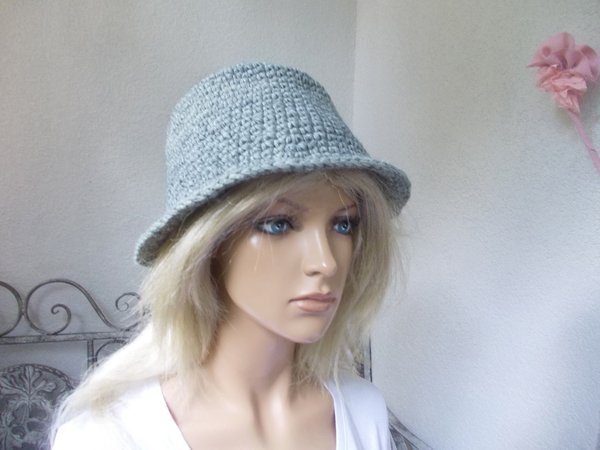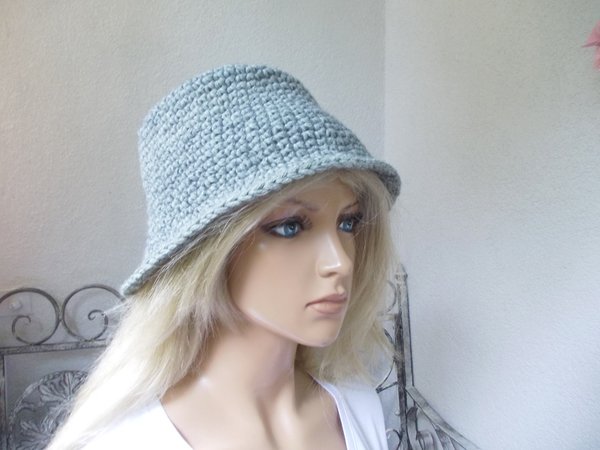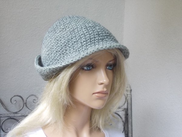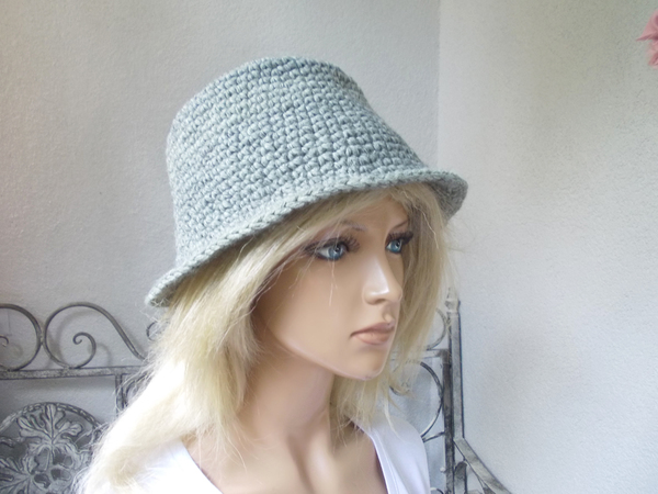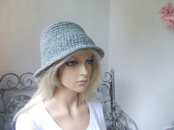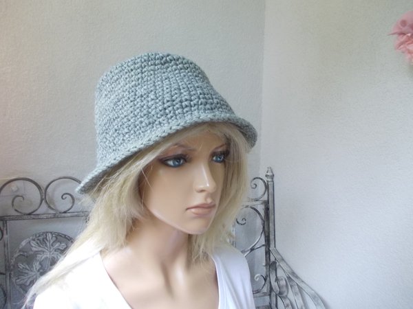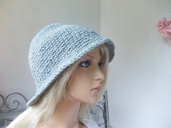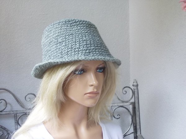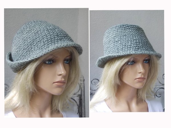 Profis fertigen diesen Hut in knapp 1 Stunde. Die Anleitung (pdf-Datei, 5 Seiten, 187 KB) ist auch super für Anfänger und Wiedereinsteiger geeignet, da nur feste Maschen gehäkelt werden. Die Größenveränderungen (für Kopfumfang ab 50 cm - über 60 cm) sind gleichfalls in der Anleitung benannt. Viele Tragmöglichkeiten, ob als Elfenhut oder Trilby, siehe Bilder. Gleichfalls kann der Hut verziert werden, Näheres siehe Anleitung.