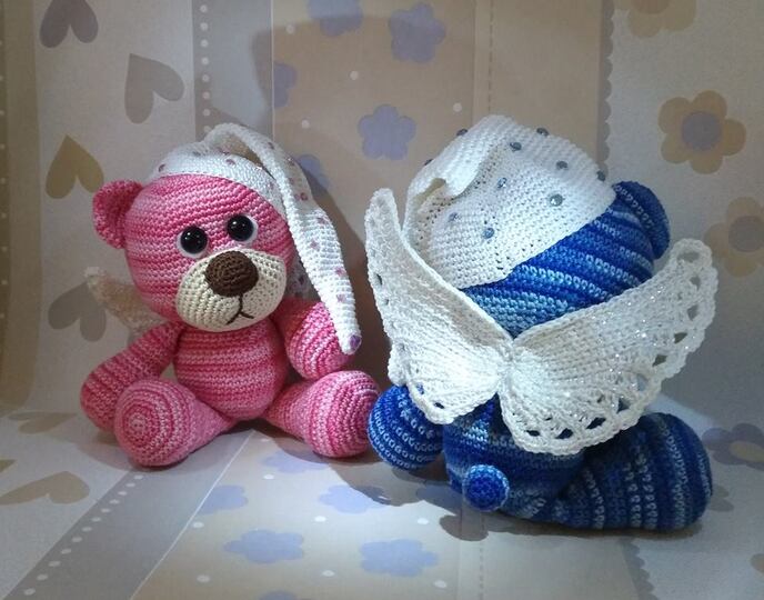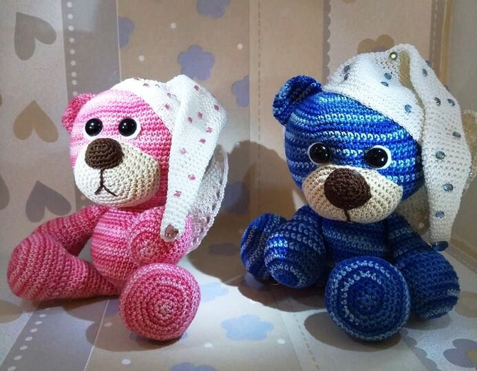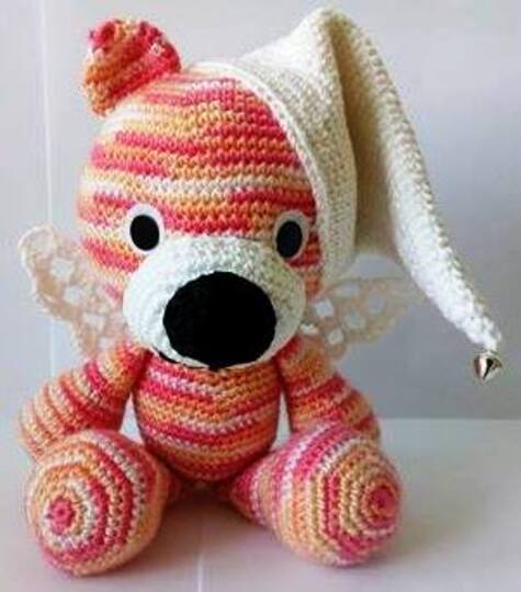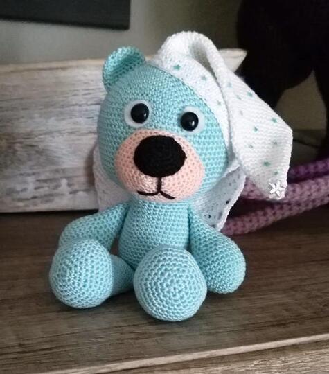 Der Traumbär hat eine Größe von ca 20 cm (mit Catania ca. 70 g) mit Häkelgarn entsprechend kleiner