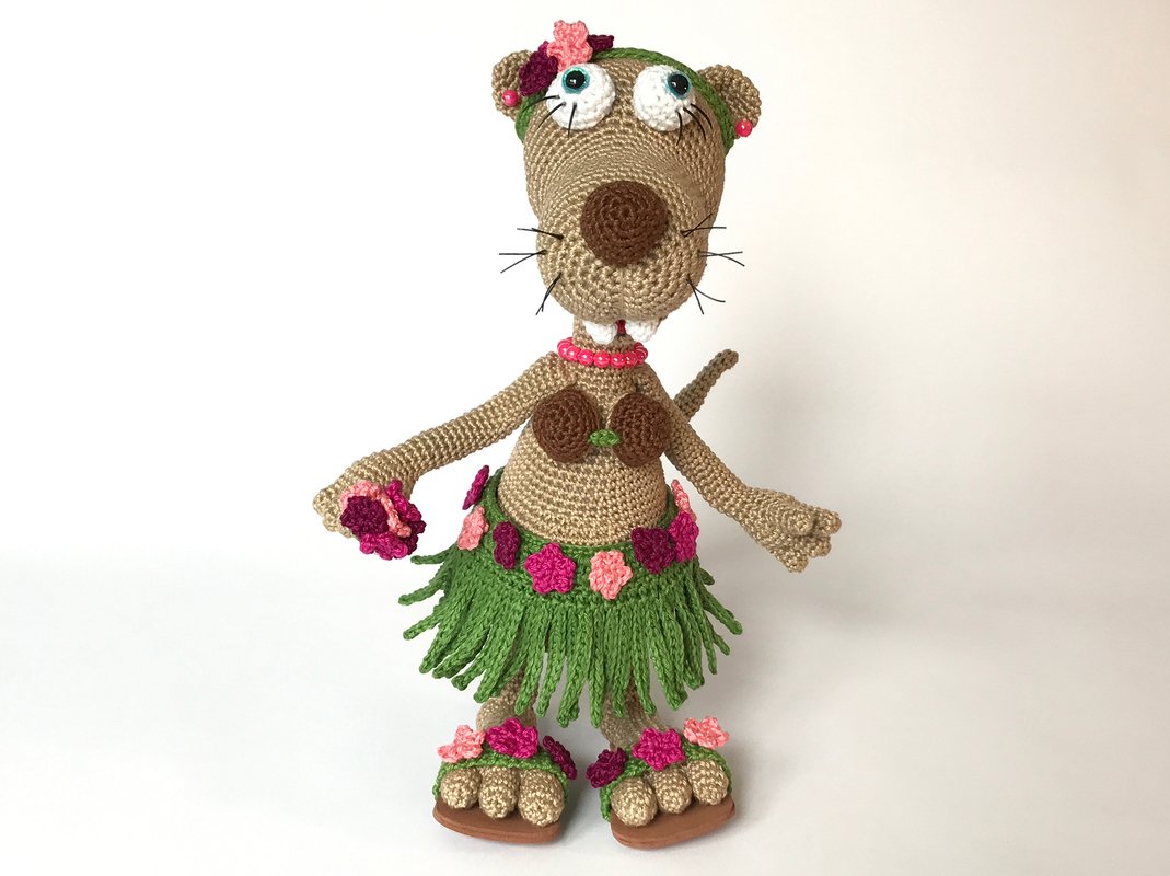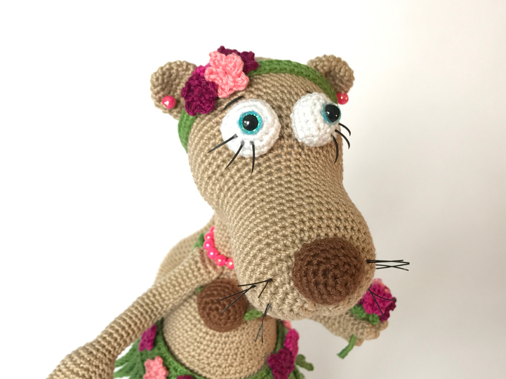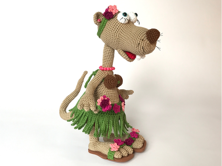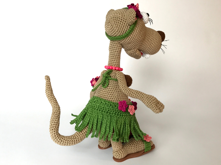 Rösli das bayrische Wiesel, im Hawaii-Outfit wird mit der angegebenen Wollstärke ca. 31 cm gross.