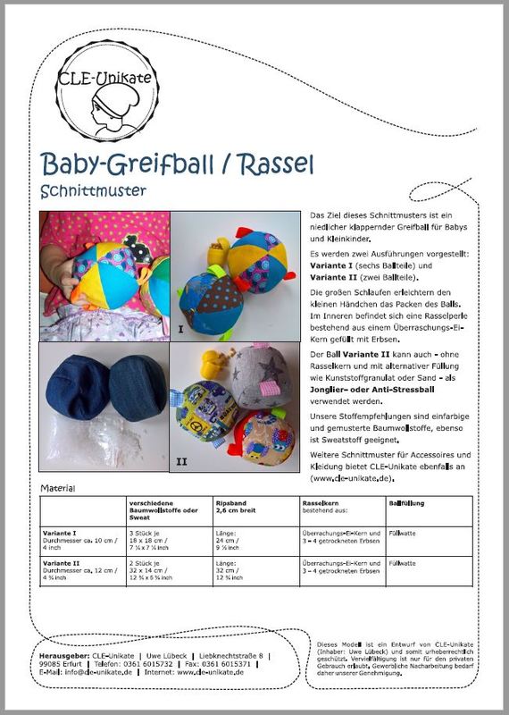 Das Ziel dieses Schnittmusters ist ein niedlicher klappernder Greifball für Babys und Kleinkinder.