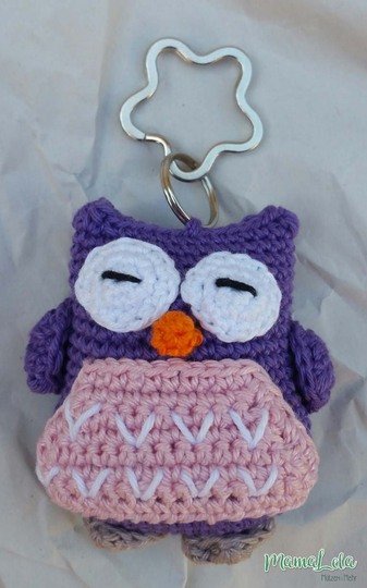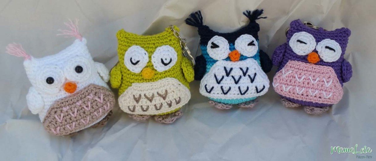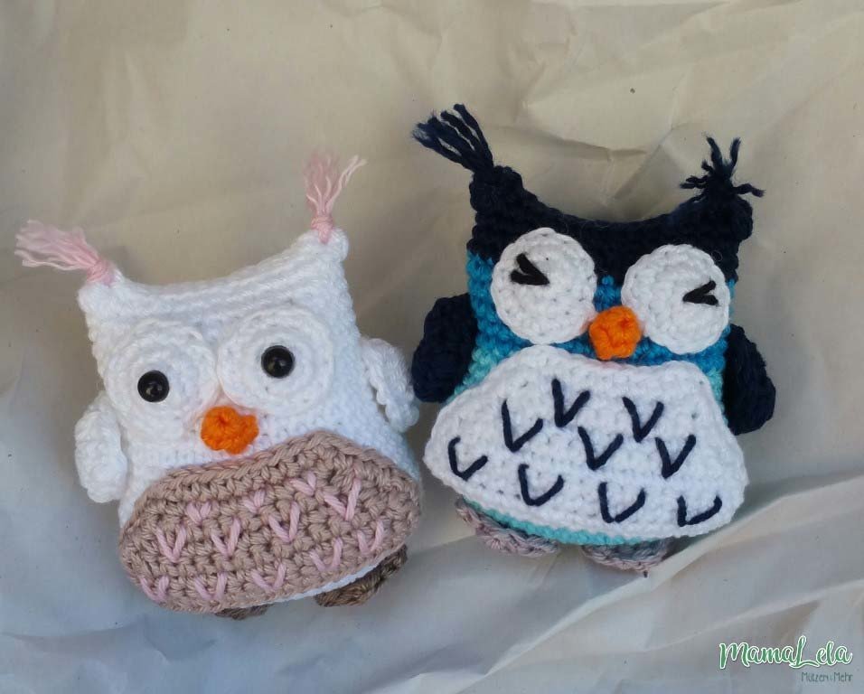Mit NS 2 und Wolle mit einer Lauflänge von 125 m auf 50 g wird die Eule ca. 8 cm groß.