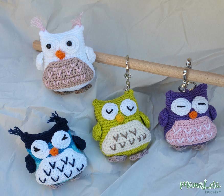 Mit dieser Häkelanleitung könnt ihr euch die im Artikelbild gezeigten Schlüsselanhänger zaubern.