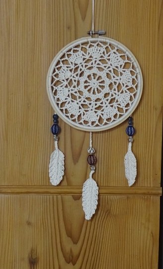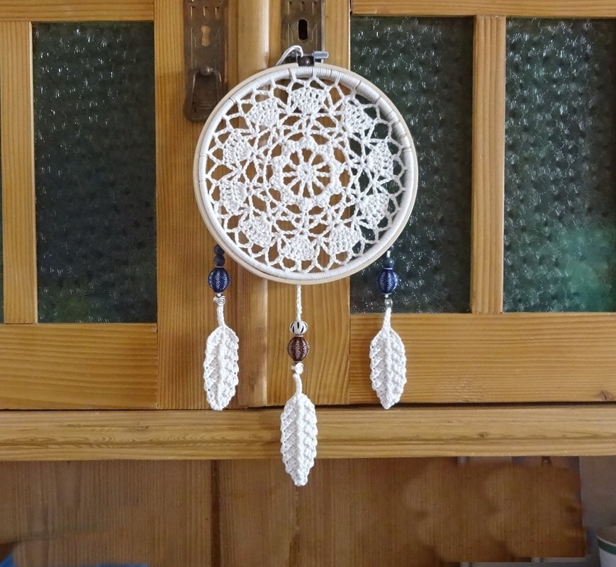 Sie finden überall ihren Platz im Haus und manchmal sogar im Garten, über der Hängematte. Dieser hier in edlem weiß ist eine ganz besondere Häkelarbeit. Und was die Ausgestaltung deines Traumfängers angeht, hast du viel Spielraum für eigene Ideen.