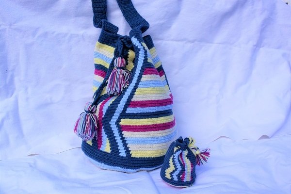 Hier habe ich wieder ein absolut einzigartiges Produkt für den modebewussten Liebhaber von Handarbeit. Man nennt diesen Stil Mochila Wayúlia. Und dieses mal sind es sogar 2!