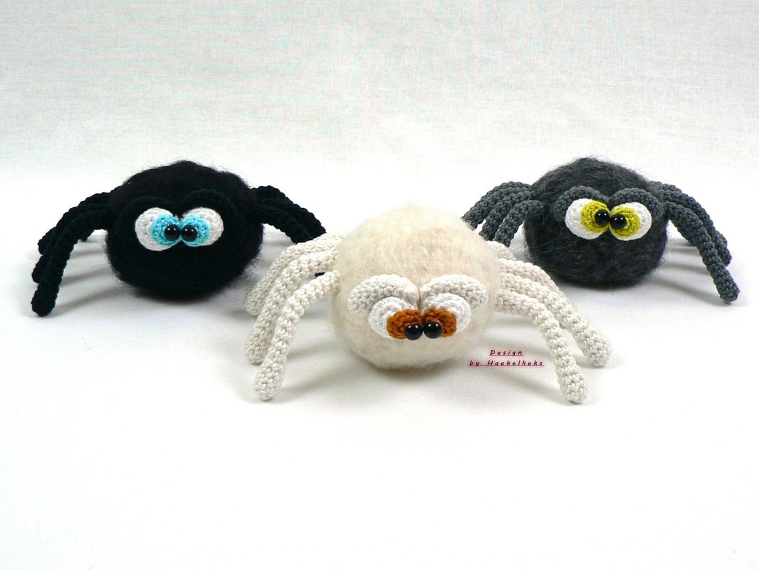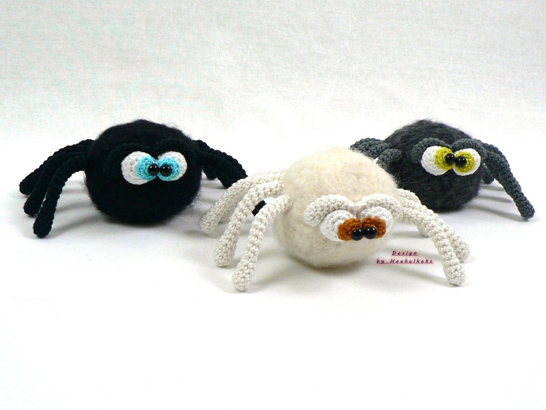 Häkel dir eigene Spinnen für Deine Hausdekoration, zum Beispiel für Halloween.