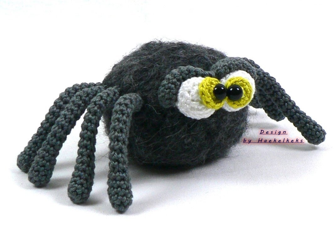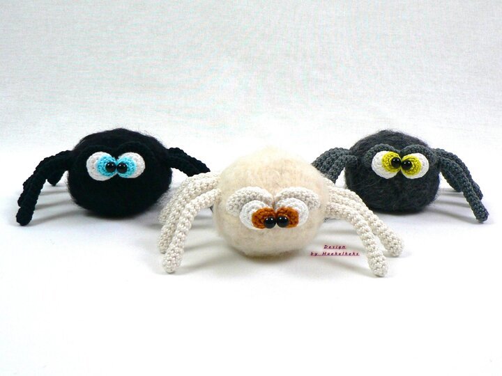Die endgültige Größe ist je nach Garn, Nadelstärke und Häkelfestigkeit verschieden. Eine gehäkelte Spinne hat eine Höhe von ca. 6 cm und eine Breite von ca. 14-16 cm (je nach Beinstellung).