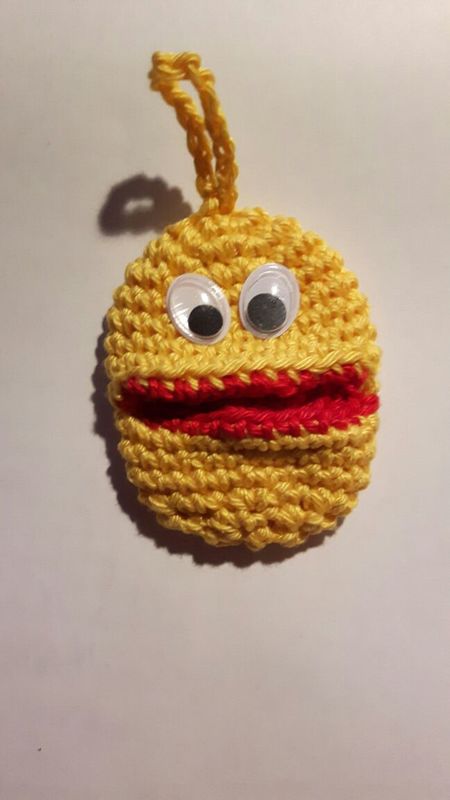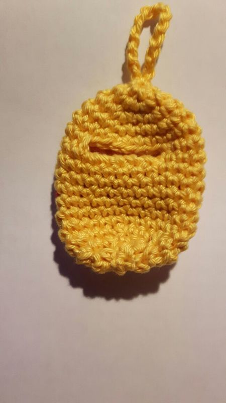 Das ist eine Häkelanleitung einer Tasche zur Aufbewahrung von Einkaufsmünzen und kleines Parkgeld.