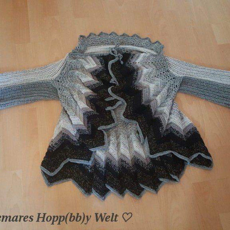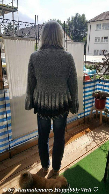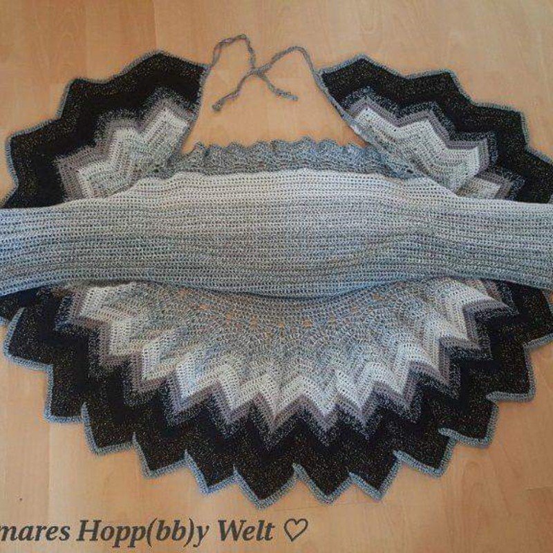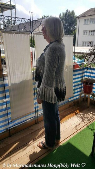 Material : ca. 600g, 4 fädiges Verlaufsgarn, LL ca. 3000m, 50/50PA/BW, NS 3,5.