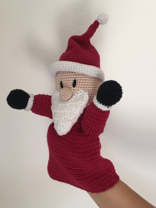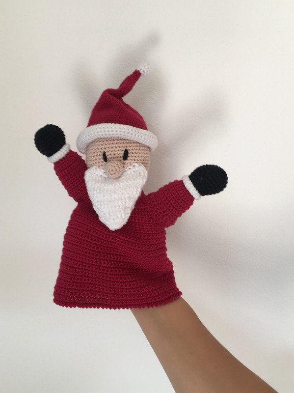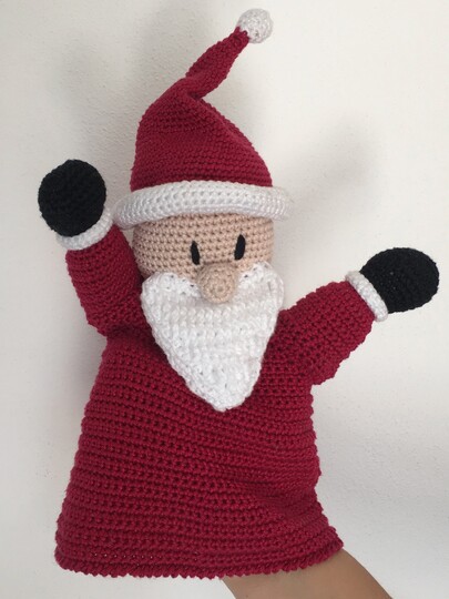 Der Weihnachtsmann passt als Handpuppe auf jede Hand (da die Armlängen nach Bedarf angepasst werden können) und wird so zum Leben erweckt.