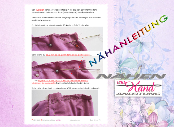 ♥ In der Schritt-für-Schritt Nähanleitung werden alle Nähstiche und Arbeitsschritte sehr genau erklärt und mit vielen Abbildungen veranschaulicht. Die Anleitung umfasst 70 (!) Seiten!