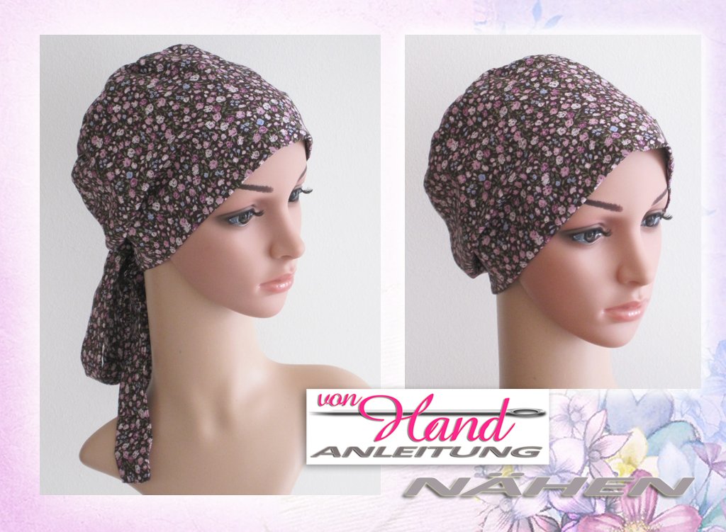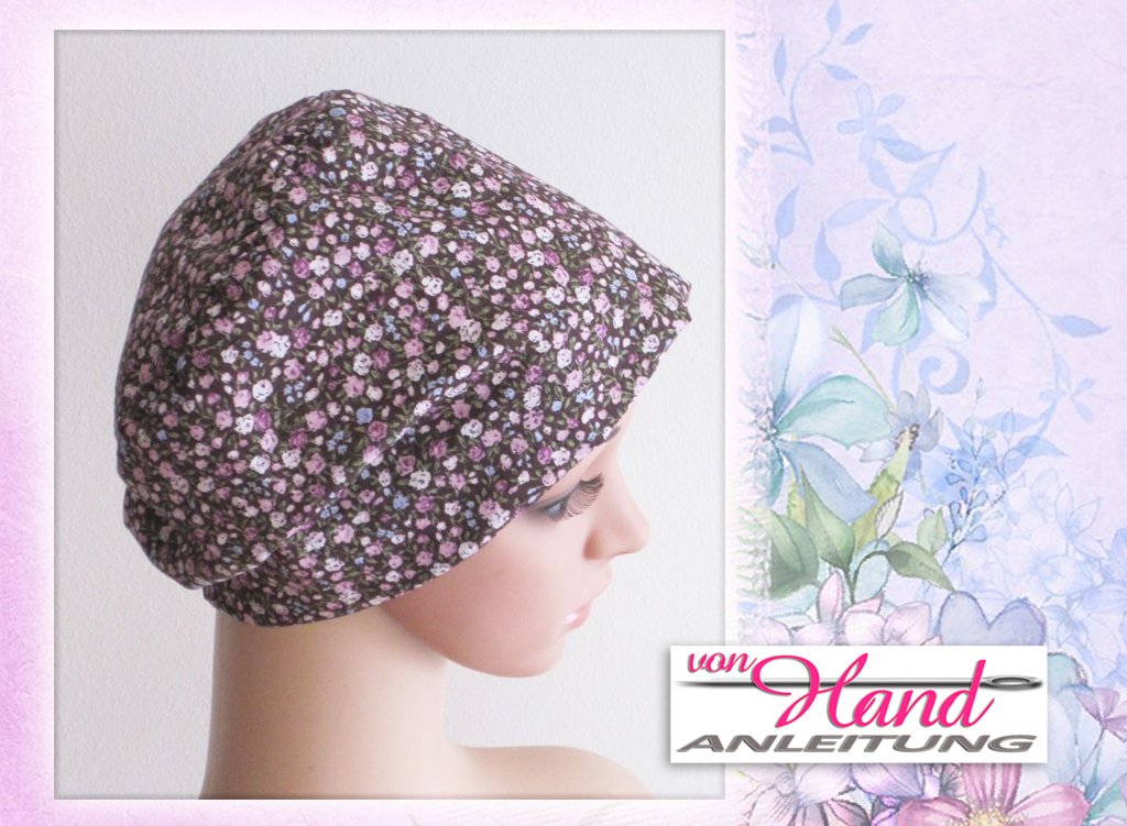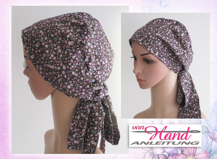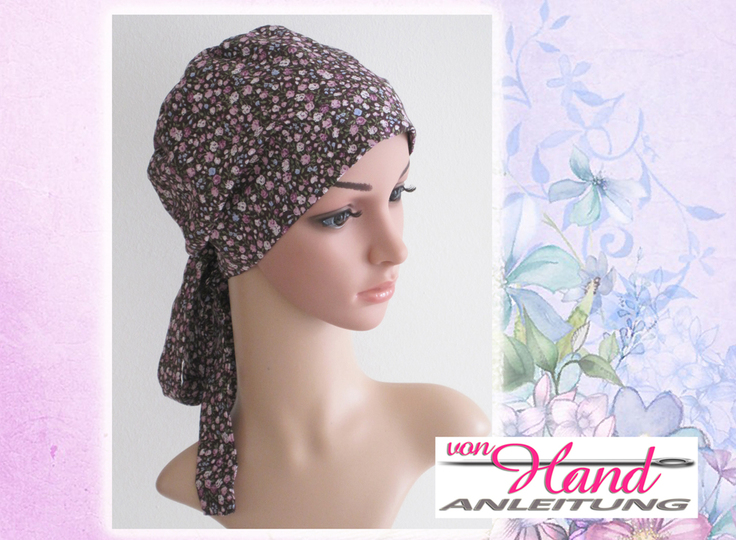 Die Kopfbedeckung KATJA aus geblümtem Baumwollstoff wirkt sehr feminin, sehr weiblich und ist auch an warmen Tagen leicht zu tragen.