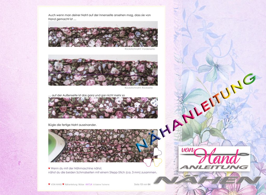 ♥ In der Schritt-für-Schritt Nähanleitung werden alle Nähstiche und Arbeitsschritte sehr genau erklärt und mit vielen Abbildungen veranschaulicht. Die Anleitung umfasst 65 Seiten!