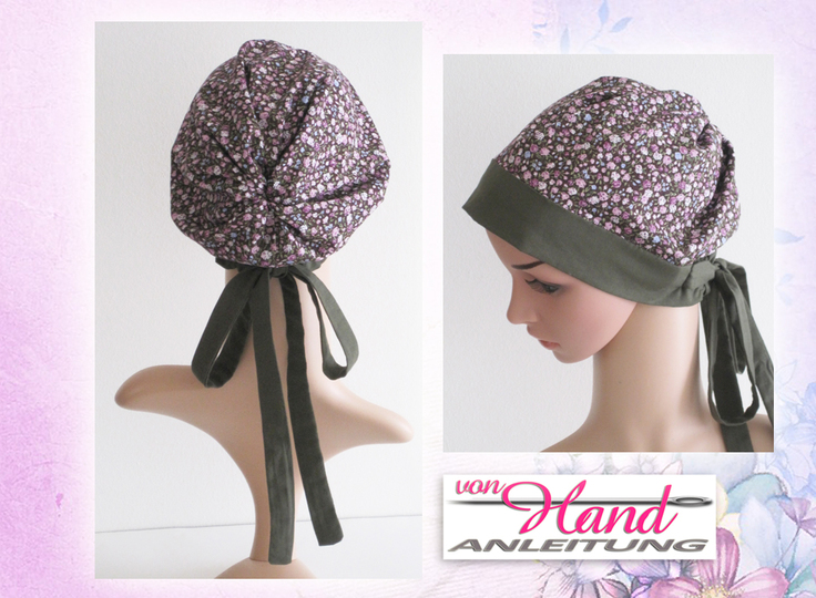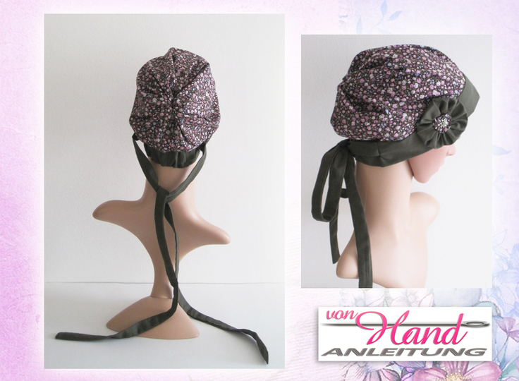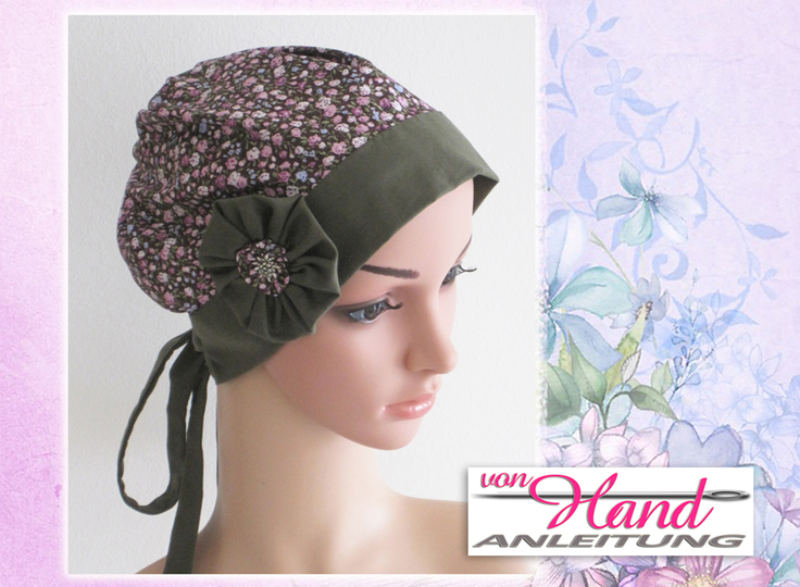 Die Kopfbedeckung HANNA aus geblümtem und unifarbigem Baumwollstoff, ist auch an warmen Tagen leicht zu tragen. Sie wirkt sehr weiblich und besticht zusätzlich durch die hübsche Stoffrosette.