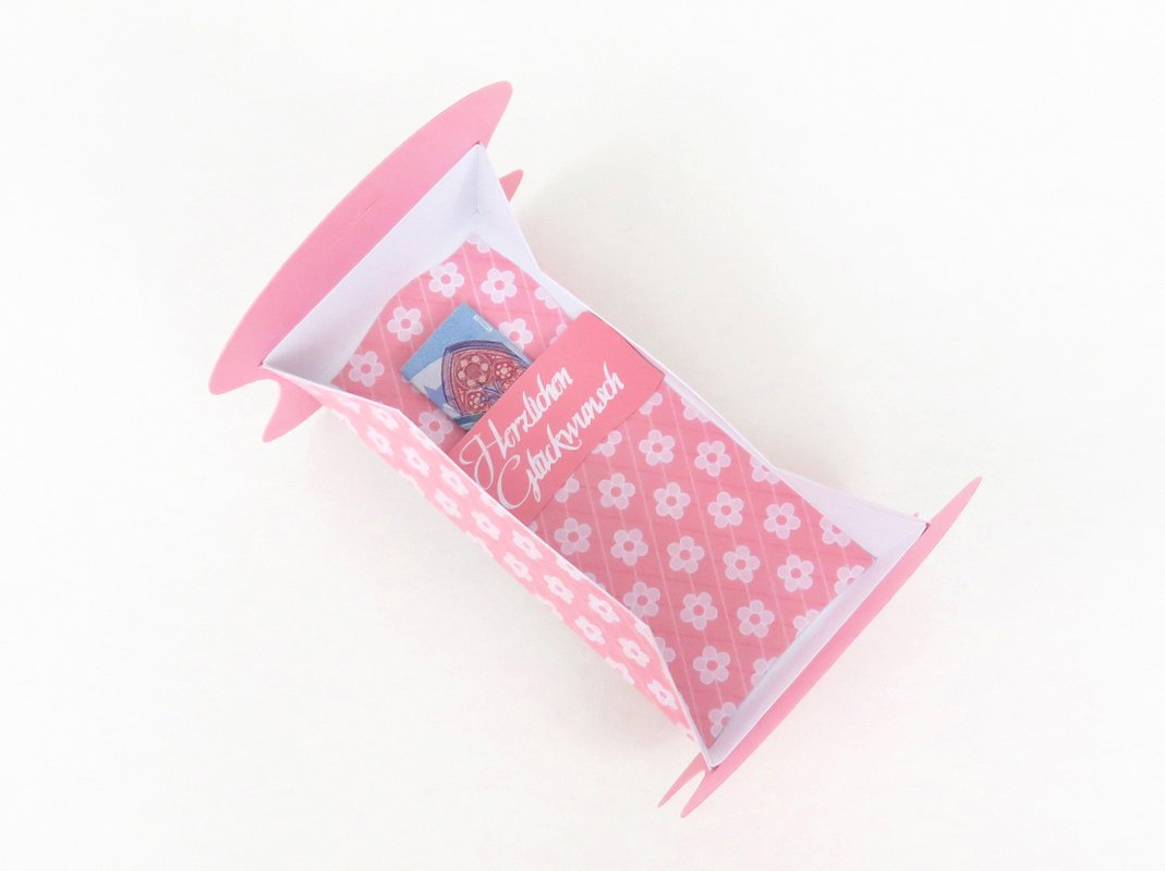 Über diese Karte freuen sich alle frischgebackenen Eltern! Sie ist eine originelle Verpackung für ein Geldgeschenk und kann später sogar als eine kleine Dekoration aufgestellt werden.