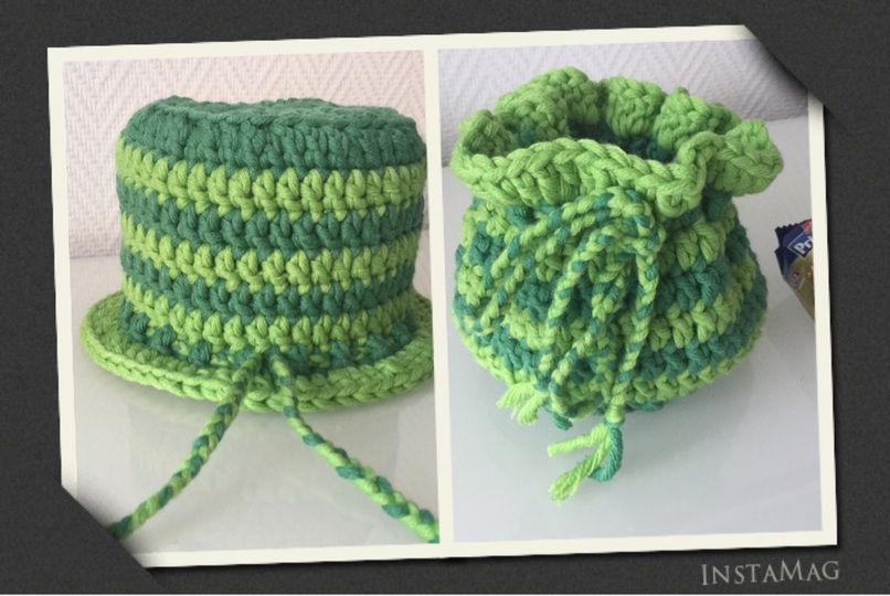 Hier habe ich zum einen einen Klorollenhut/ Toilettenrollenhut und zum anderen einen kleinen Beutel.