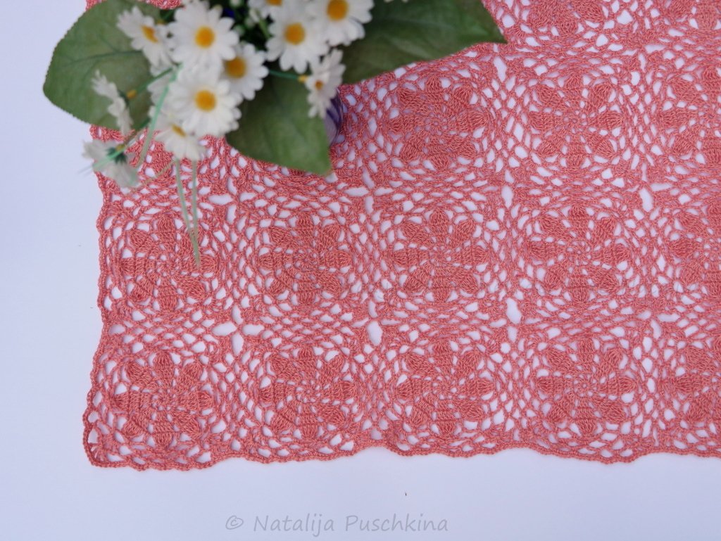 Verkauf der von Dir hergestellten Tischdecken ist möglich: Du darfst die Artikel, die Du mithilfe meiner Anleitung zum Häkeln von Tischdecke gefertigt hast, in beliebiger Stückzahl gewerblich verkaufen. Bitte den Hinweis: „Angefertigt nach dem E-Book von Natalija Puschkina https://www.crazypatterns.net/de/store/Natalija“ dazusetzen.