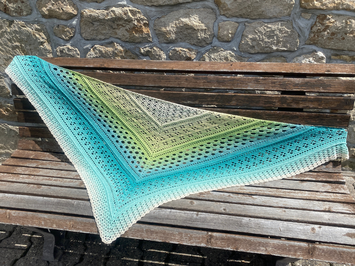 Mit insgesamt 5 verschiedenen Mustern bietet dieses einzigartige Schultertuch eine abwechslungsreiche und spannende Häkelzeit.