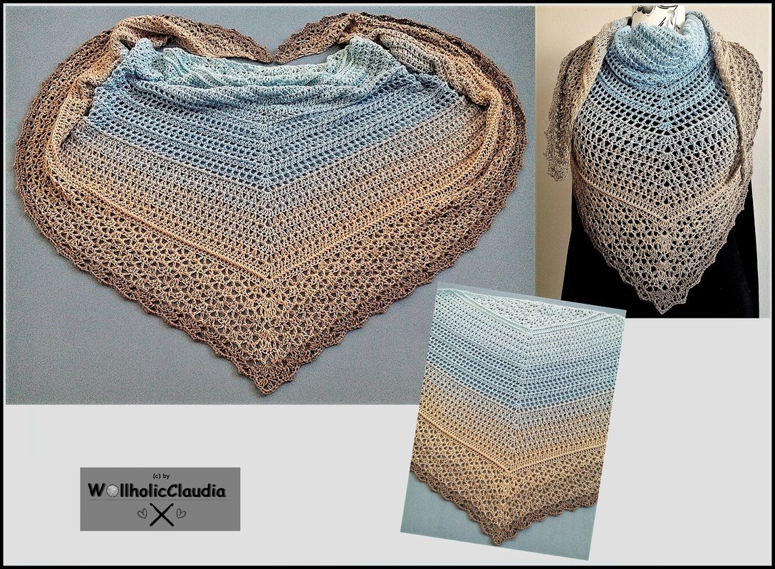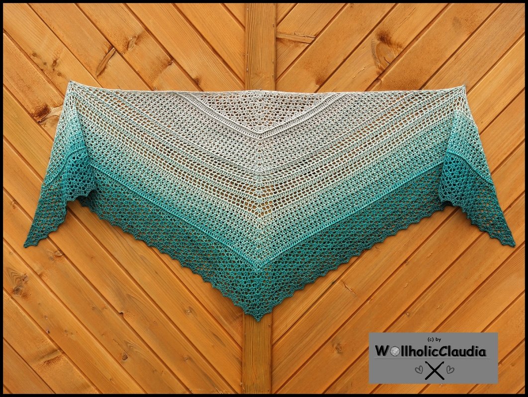 Bei diesem Dreickstuch namens "Meerestiefe" macht Lust auf Urlaub, Strand und Meer.