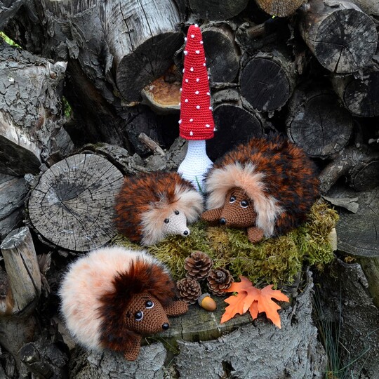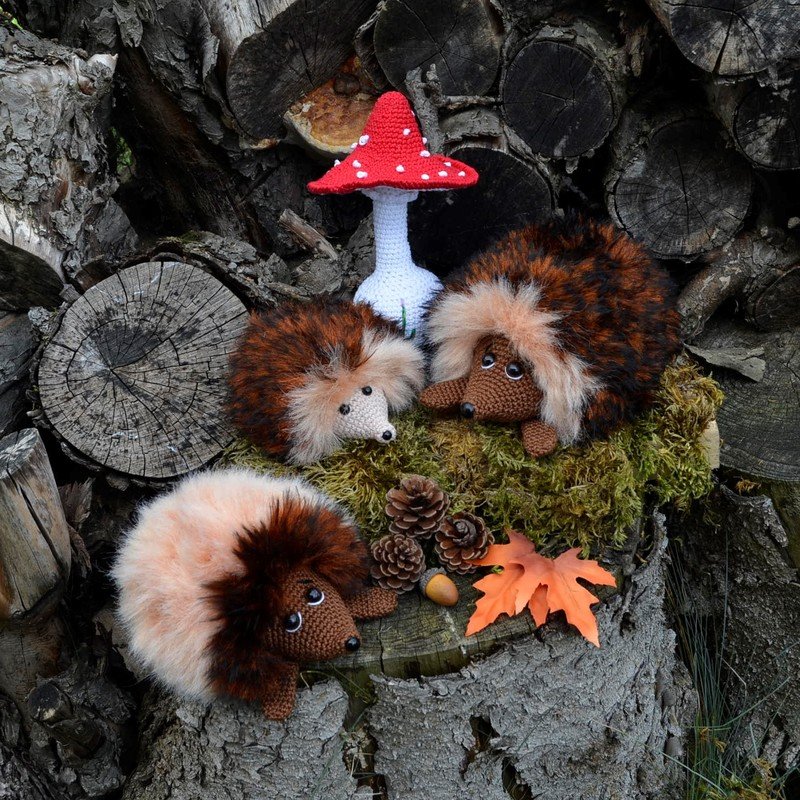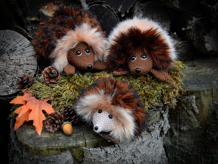 Häkelanleitung Igelfamilie als PDF Datei mit vielen Bildern und ausführlicher Beschreibung.